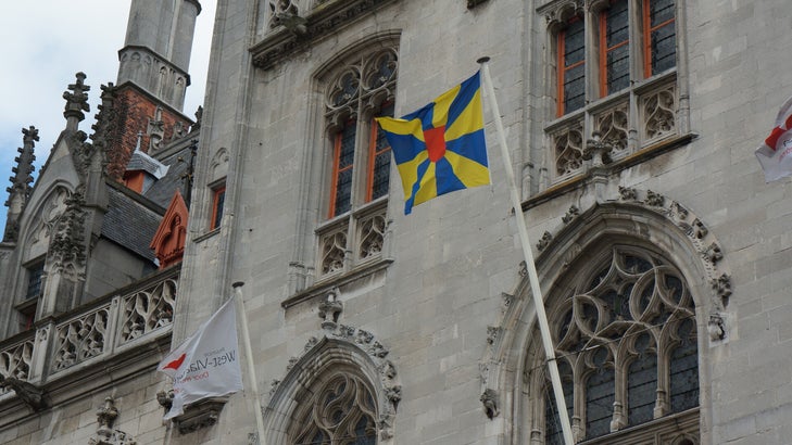The old West Flemish coat of arms on a building in Brugge.