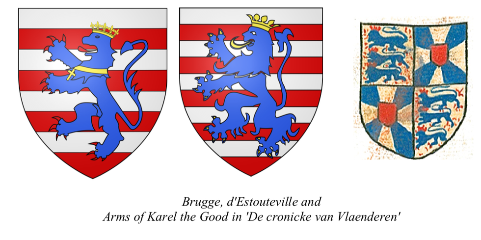 Then a dragon on the shield of Baldwin I of Flanders. On the right the lions of Godfried of Anjou and of his nephew Philip of Alsace count of Flanders.
